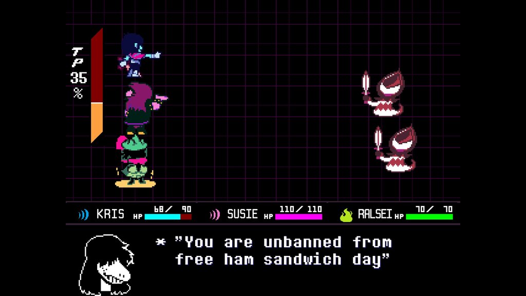 Every experience has the opportunity to be the introduction to entire formats and genres for an individual. When I played Earthbound as a child, I lacked the context to understand how much it structurally functioned as a Dragon Quest parody. Despite this, it resonated with me deeply. Deltarune is clearly a hit, and has struck a chord with audiences of all ages. I would hazard a guess that for many of those players, Deltarune could be their introduction to this genre. Even though so much of this game is a conversation with the games that came long before it, it proudly stands on its own, and I’m happy to give this game my strongest recommendation.