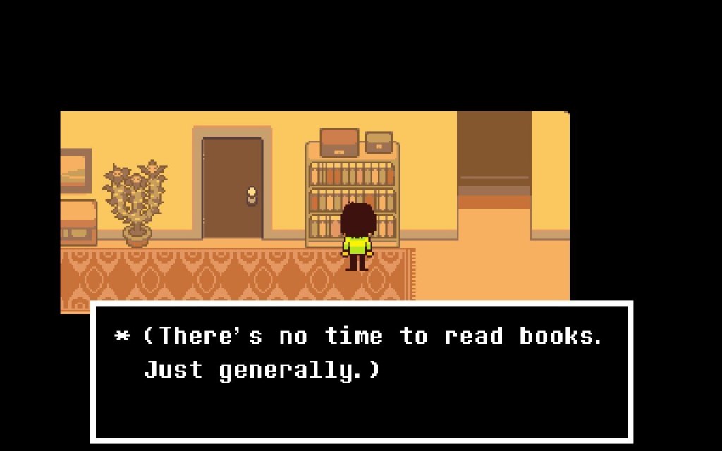 So much of this blog has been talking about the mechanics and functions of things, but the truth is the mechanics aren’t even Deltarune’s strongest assets. The story on display is rich and layered, and I don’t want to pick it apart because spoiling the experience would do a real disservice to the game. It has the ideas of bizarre parallel realms of Alice’s Adventures in Wonderland married with traditional fantasy RPG stories, with a fine sprinkling of the emerging core question of “What’s the real world if this parallel reality is better than the reality we have?”