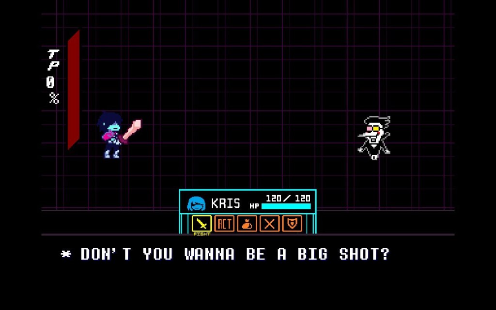 The designer, Toby Fox, is an indie superstar with plenty of memorable designs. From the humble Earthbound hacks of his youth, to musical accompaniments to Homestuck, all the way to the runaway success of Undertale, he’s won over many hearts. Deltarune is a spiritual successor to Undertale, but I think the game could still be enjoyed on it’s own. It pulls from a long history of RPGs, and I find that it is most strongly pulling from Earthbound and Chrono Trigger, with it’s quirky sensibilities and three man party combat. More than anything however, is the mechanical conversation this game has with Fox’s previous work, Undertale.